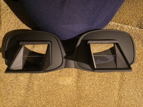 Son unas gafas, que basadas en espejos, como si fuera un periscopio, refleja la imagen que hay debajo de las gafas, con lo cual, son ideales por ejemplo para usar el móvil, sin tener que tener todo el cuello flexionado hacia abajo. O para en la cama, ver la televisión o leer, ya que puedes estar totalmente tumbado, en una posición cómodo, y sin forzar el cuello, y aún poder ver la televisión en la pared, o leer un libro, sin levantar la cabeza.